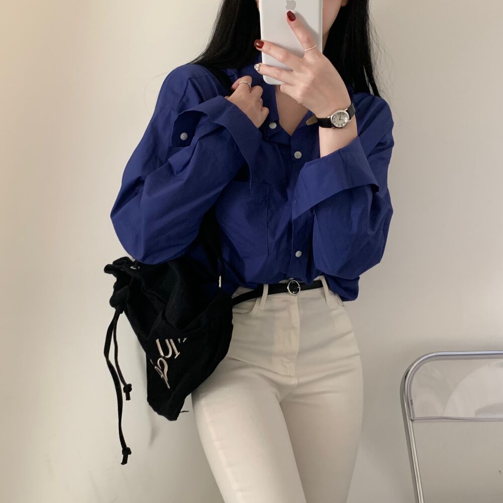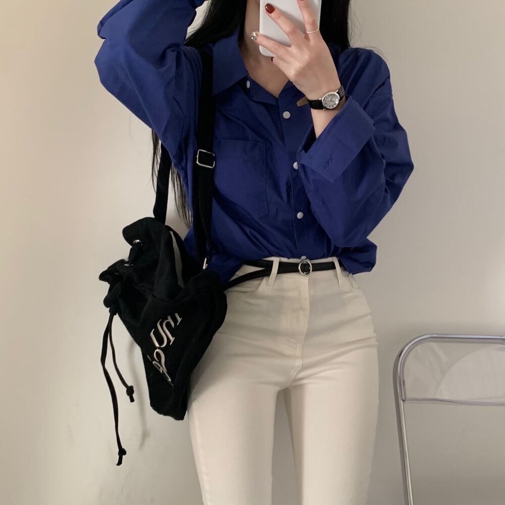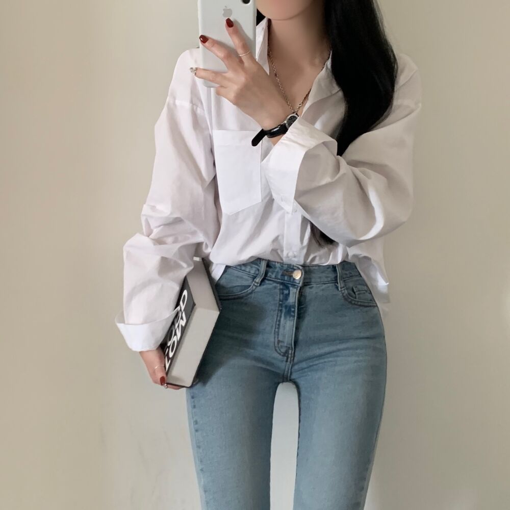 Solid Color Loose And Simple Shirt Casual Base White Shirt